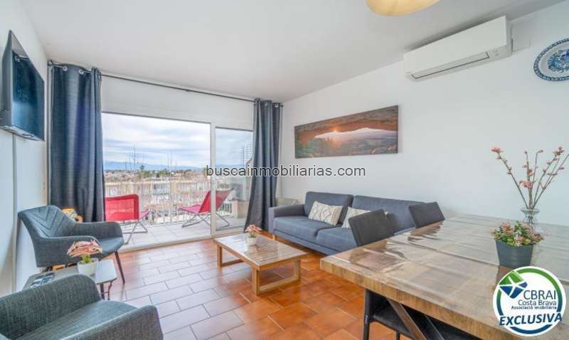 En venta, precioso apartamento muy luminoso y totalmente exterior (travesero), situado en la 3ª planta de una residencia con piscinas y jardín comunitario, en pleno centro de Empuriabrava y a pocos pasos del mar.