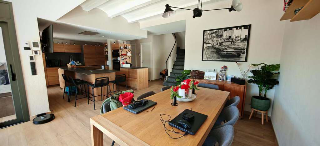 Detalles adicionales: Esta propiedad es como un puente entre la historia y la tecnología, donde el encanto del pasado se encuentra con el confort del futuro. Sus acabados interiores de alta gama, como el pavimento porcelánico imitación madera de roble, contrastan armoniosamente con el techo original de bóveda catalana del comedor. La chimenea con puerta de vidrio y el equipamiento de baños con marcas premium como HANSGROHE y MAPINI, subrayan la calidad de cada detalle.