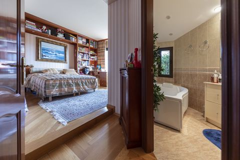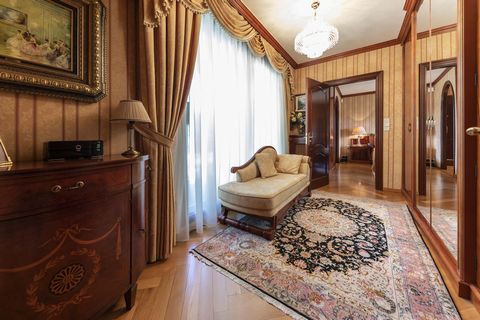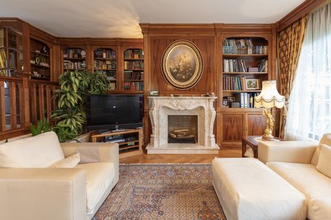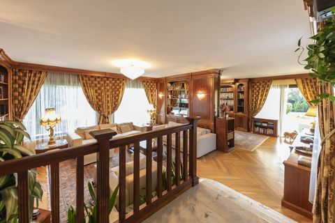 The main floor with access to the garden and the pool. The hallway. Restroom. Spacious living room with built-in furniture and a fireplace, luxurious cabinet with built-in furniture. Dining room with access to the atrium. Fully equipped kitchen (gas) with tea area. Technical premises, laundry. Guest bedroom with bathroom (shower, toilet). The walls in the house are decorated with fabric. A bedroom with bathroom (bath, toilet) with access to a large terrace. Fitted wardrobes. The walls in the house are decorated with fabric. Bedroom suite with dressing room, boudoir, bathroom (jacuzzi bath, shower) and separate toilet, exit to the terrace. Built-in wardrobes. The walls in the house are decorated with fabric. Ground floor with access to the garden and the pool. Second living room with bathroom (shower, sauna, toilet). Can be used as a separate bedroom. Fitted wardrobes. Bedroom with bathroom (corner bath, toilet). Fitted wardrobes. The walls in the house are decorated with fabric. Boudoir. Bodega.