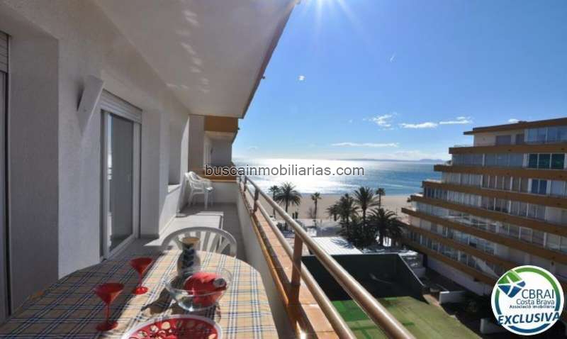 En venta este acogedor apartamento situado en primera línea de mar en Roses (Costa Brava), con una terraza que ofrece vistas espectaculares al mar y a la bahía.