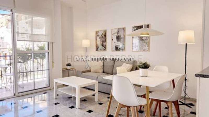 INTERIOR. Hall de entrada, dos dormitorios (uno doble y otro individual), salón-comedor con salida a pequeña terraza y cocina independiente con barra que da al comedor.