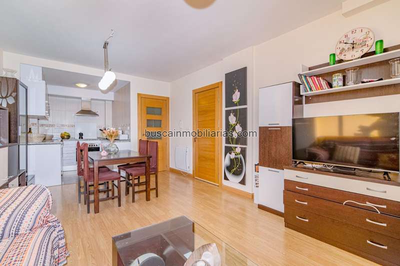 Dispone de un amplio salón-comedor con cocina abierta, un espacio moderno y funcional con gran ventana de aluminio corredera y doble acristalamiento, que aporta mucha luz natural.