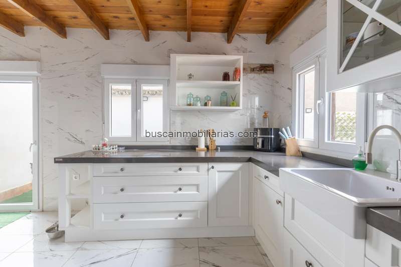 Esta vivienda ha sido totalmente reformada, combinando lo mejor de hoy con el encanto de siempre. Al entrar, te recibe una primera planta abierta y luminosa, donde el salón se funde con una cocina amplia, moderna y completamente equipada, pensada para disfrutarla de verdad. Desde aquí se accede a uno de los grandes protagonistas de la casa: