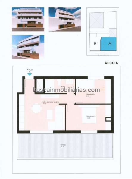 ATICO-A CON TERRAZA DE 40.55 METROSPróxima construcción de viviendas en pleno centro, junto metro, rodeado de todas las comodidades y servicios que ofrece Churriana de la Vega.Ático de 2 dormitorios, con terraza de 40.55 metros, con posibilidad también de adquirir una plaza de garaje con trastero.no incluida en el precio (+15.000 eur)El precio indicado no incluyen los gastos inherentes a la compraventa (impuestos, notaria, registro, etc).