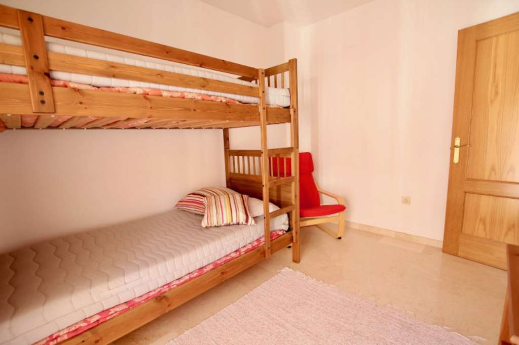 En la planta baja, encontrarás un amplio salón con suelos de mármol, una cocina totalmente equipada, despensa y una terraza con vistas impresionantes. Además, cuenta con un baño completo para mayor comodidad. La planta superior alberga el baño principal en suite con ducha, dos dormitorios uno de ellos con armario empotrado y otro baño completo con bañera.