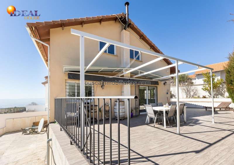 En la parte inferior de la vivienda, la propiedad cuenta con otra amplia terraza con espacio suficiente para instalar piscina y zona de césped artificial, creando un entorno perfecto para el descanso y el disfrute en familia.