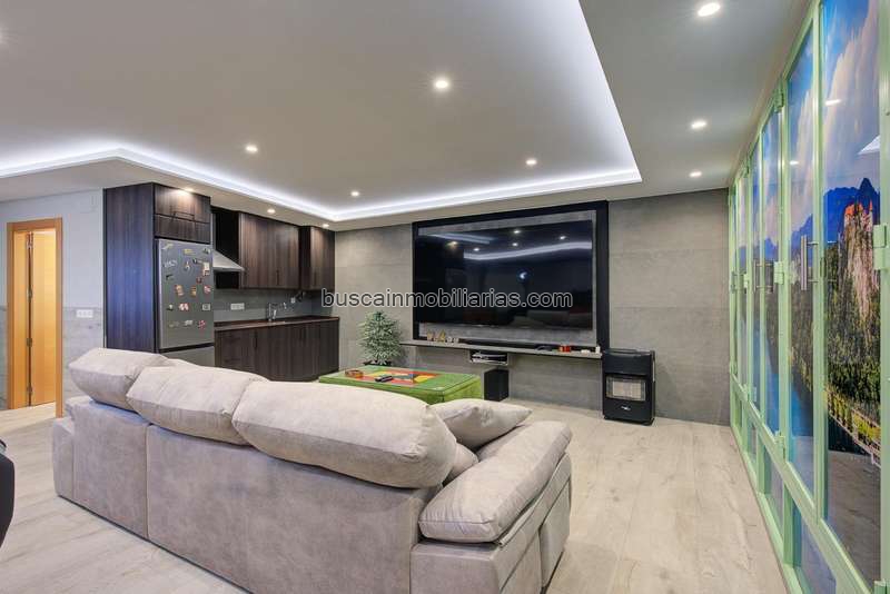 •Salón de Cine: Disfruta de la mejor calidad de imagen con una TV Samsung 75” 8K con barra de sonido. Relájate en el sofá de 3 plazas (3m) con motor de elevación, bajo la climatización de un ventilador de techo y una estufa de pellets de 10k.
