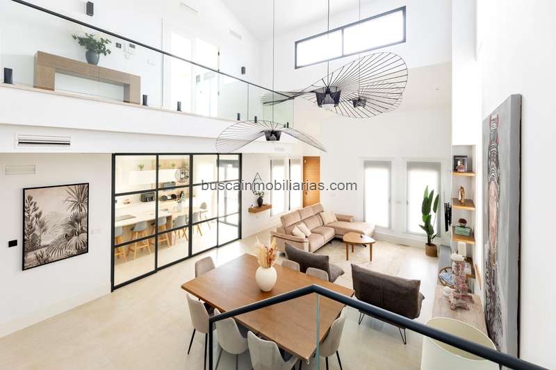 La vivienda destaca por su luminoso salón de doble altura, con grandes ventanales que llenan el espacio de luz natural, una elegante escalera volada con barandilla de cristal, y una decoración que mezcla elementos modernos con un toque cálido y acogedor. La cocina, de la prestigiosa marca Arrital, está totalmente equipada, cuenta con isla y acceso directo al exterior. También hay una práctica lavandería con armarios empotrados, el dormitorio principal tipo suite con baño privado y vestidor, una sala de juegos (que puede adaptarse como despacho o habitación extra), otro dormitorio y un baño completo.