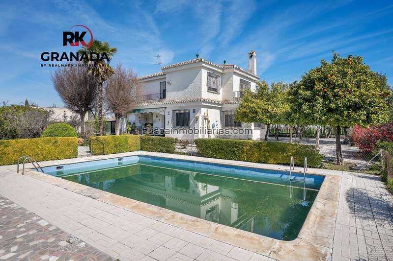 Descubre esta magnífica casa única ubicada en Camino de Purchil, en la Vega de Granada, escaso a 2 km andando al centro de Granada. Esta casa exclusiva cuenta con un amplio espacio que se distribuye en planta baja con 121m2 y primera planta con 105m2. Amplio salón, cocina independiente, seis habitaciones y tres baños completos, con una parcela de 2700 m2 con una espectacular piscina y rodeada por un amplio jardín, con distintas clases de árboles frutales ya crecidos, garaje cerrado y por si fuera poco también cuenta con un almacén. Ofreciendo así el confort ideal para familias grandes o aquellos que buscan espacios generosos.