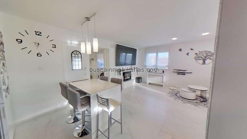No es otra vivienda más, es una vivienda totalmente reformada, es independiente y en esquina lo que hace que la privacidad y el espacio junto a las vistas sea un privilegio, tiene placas solares y caldera de pellets haciendo que el consumo de la luz sea coste 0, ¿te imaginas vivir en invierno en tu casa, sin pasar frio y que no te cueste nada?, pues eso lo tienes en este bonito chalet, además cuenta con bomba de frio y calor en el salón, con dobles ventadas de aluminio climalit, puertas lacadas en blanco y una distribución súper cómoda en una sola planta, donde nada más entrar tenemos un hall distribuidor, un baño completo con plato de ducha, un gran salón comedor con chimenea (en este momento decorativa pero con opción de hacerla real) con una cocina integrada y totalmente equipada con muebles y electrodomésticos y acceso a una espaciosa terraza con vistas al jardín y a la piscina, tiene tres habitaciones con armarios empotrados, siendo la principal en suite con un baño completo y plato de ducha.