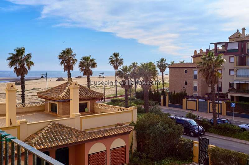 En primera línea de playa en la codiciada Urbanización Alcaraván de Isla Canela, este amplio apartamento de 1 dormitorio que cuenta con: