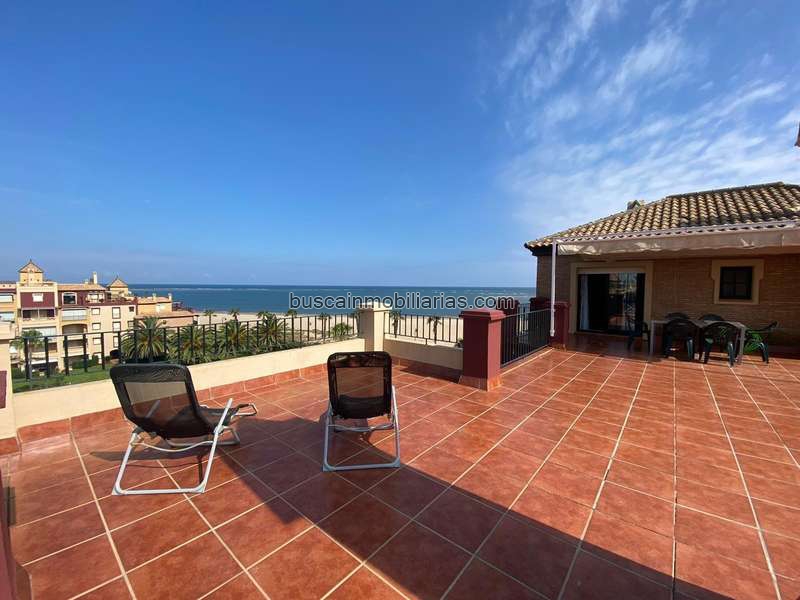 Extraordinario apartamento ATICOubicado en la prestigiada Urbanización ALCAUDON,cuentacon una terraza de 150 m/2con vistas al mar y tiene tres habitaciones dos baños completos, Salón y Cocina, ycapacidad para 8 personas; La playa se encuentra a 25 metros y a 150 metros de toda la zona comercial de Isla Canela, donde podrá disfrutar de todos los servicios necesarios.