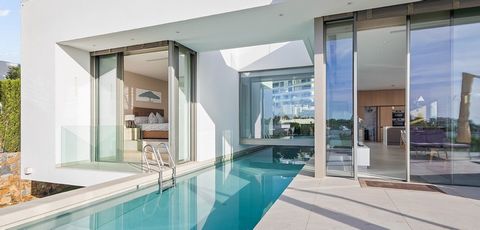 Una característica distintiva de esta villa es su elegante piscina alargada, espectacularmente iluminada de noche y diseñada con un puente de cristal que conduce directamente a la suite principal. Este santuario privado cuenta con armarios empotrados, un baño en suite estilo spa con jacuzzi y ducha a ras de suelo, además de su propia terraza con acceso directo a la piscina, ofreciendo un retiro diario de paz y lujo.