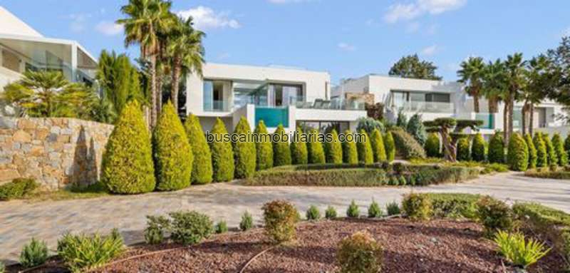 Desde el momento en que llegas, un jardín delantero ajardinado y dos plazas de aparcamiento privadas marcan la pauta de lo que espera más allá. Las líneas arquitectónicas limpias y las amplias paredes de cristal te invitan a un mundo de lujo refinado, donde la vida interior y exterior fluye de manera perfecta.