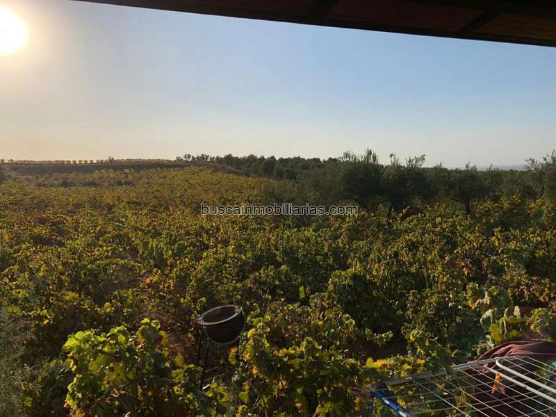 Finca con más de 20.000m2 de viñedos en explotación, algunos olivos y arboles frutales. Casa con salón con chimenea, cocina, baño, 2 habitaciones y gran terraza, agua, luz y alarma.
