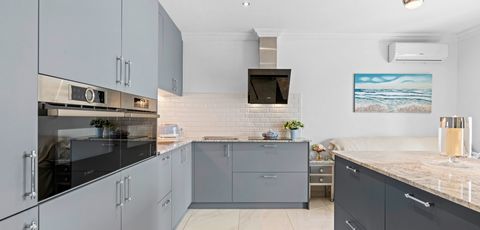 La cocina de estilo independiente está equipada con electrodomésticos de alta gama y una isla central. El diseño fluido y abierto se integra perfectamente el diseño de la casa, creando un espacio ideal para convivir y disfrutar del tiempo en familia o con amigos. Desde el salón, las vistas panorámicas se abren ante ti, proporcionando un ambiente relajante y luminoso.
