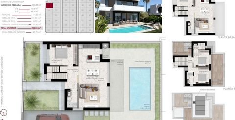 Chalets: Viviendas independientes de tres dormitorios y tres baños, disponibles en una o dos plantas. Cada villa incluye piscina privada, solarium y aparcamiento dentro de la parcela. También hay sótanos opcionales.