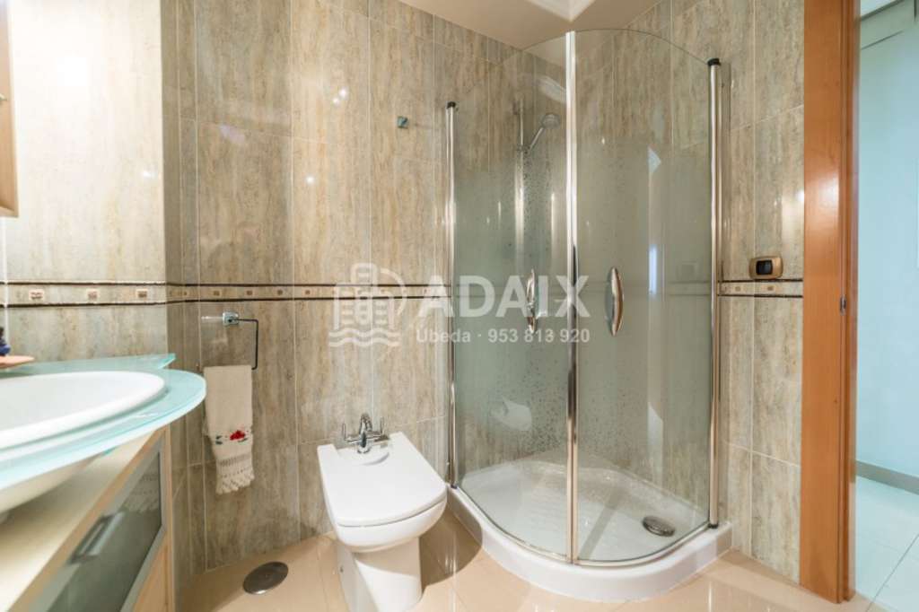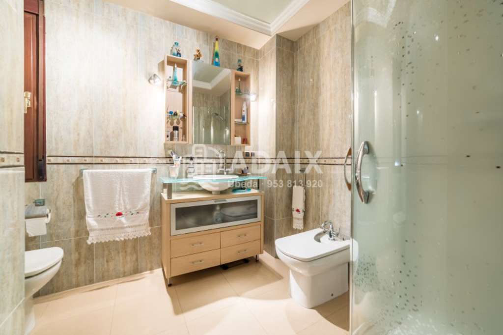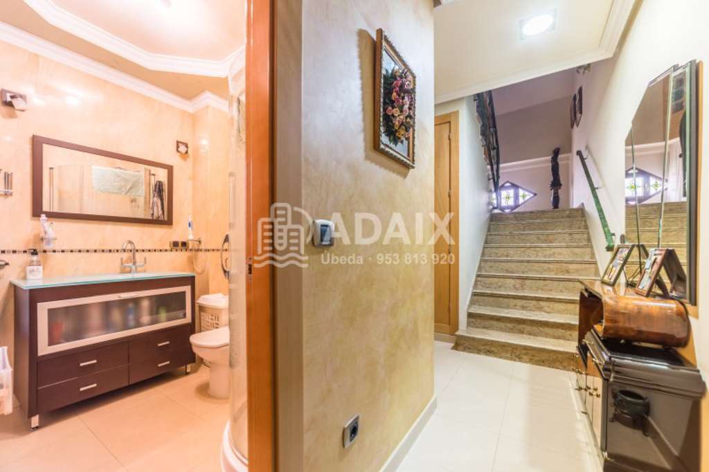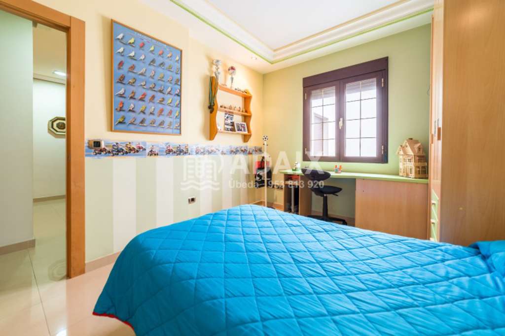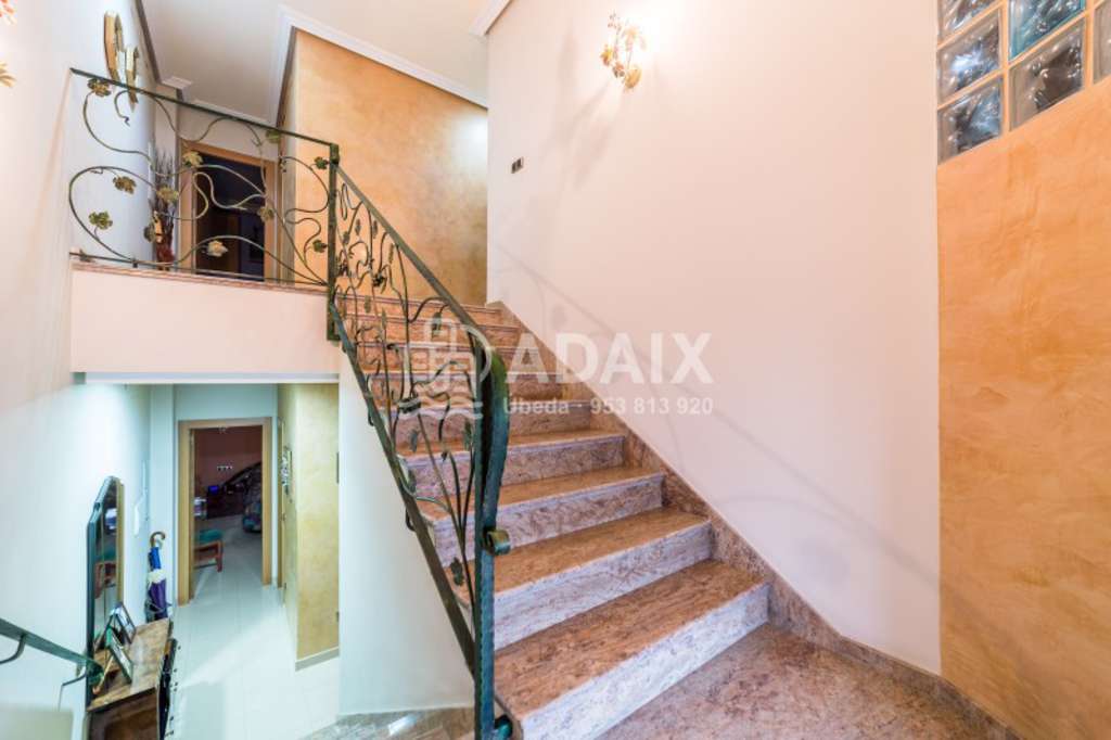 REFERENCIA: 5357B Buscas una casa amplia y lista para entrar a vivir Ponemos a la venta esta preciosa casa en Úbeda Ciudad patrimonio de la Humanidad, construida en el año 2007 con los mejores materiales. Situada en una calle principal del barrio de San Pedro, a escasos metros de la avenida de la Libertad. Gran casa distribuida en tres plantas con una superficie construida de 260 m2 y con 100 m2 de parcela. En la planta semisótano tendrás capacidad para guardar 3 coches con acceso desde una cómoda rampa y puerta automática, además de una habitación o despacho y un baño. La planta baja dispone de un espacioso hall de entrada, amplio salón exterior, amplia cocina completamente amueblada, amplísimo dormitorio principal, baño completo con plato de ducha y un coqueto patio de unos 10 m2 con acceso directo desde la cocina con lavadero. Desde esta planta podemos acceder a través de una preciosa escalera a la planta superior, que se distribuye en 3 dormitorios amplios y luminosos, amplio baño completo con plato de ducha. En cuanto a calidades, la vivienda dispone de ventanas de aluminio con cristal climalit y rotura de puente térmico, suelos y azulejos porcelánicos de gama alta de Porcelanosa, preinstalación de aire acondicionado en toda la vivienda, cocina y baños amueblados, preciosos techos acabados con molduras, paredes lisas pintadas con estuco veneciano, termo eléctrico, puertas de madera de diseño, rejas de ventanas de hierro, puerta de cochera automática. La ubicación es ideal, zona muy tranquila, junto a colegios, supermercados, parque infantil, comercios, etc. con acceso rápido, muy cercana al centro de la localidad y con la tranquilidad de vivir en una zona residencial con mucho aparcamiento. La visitamos. Llámanos al 9 5 3 8 1 3 9 2 0.