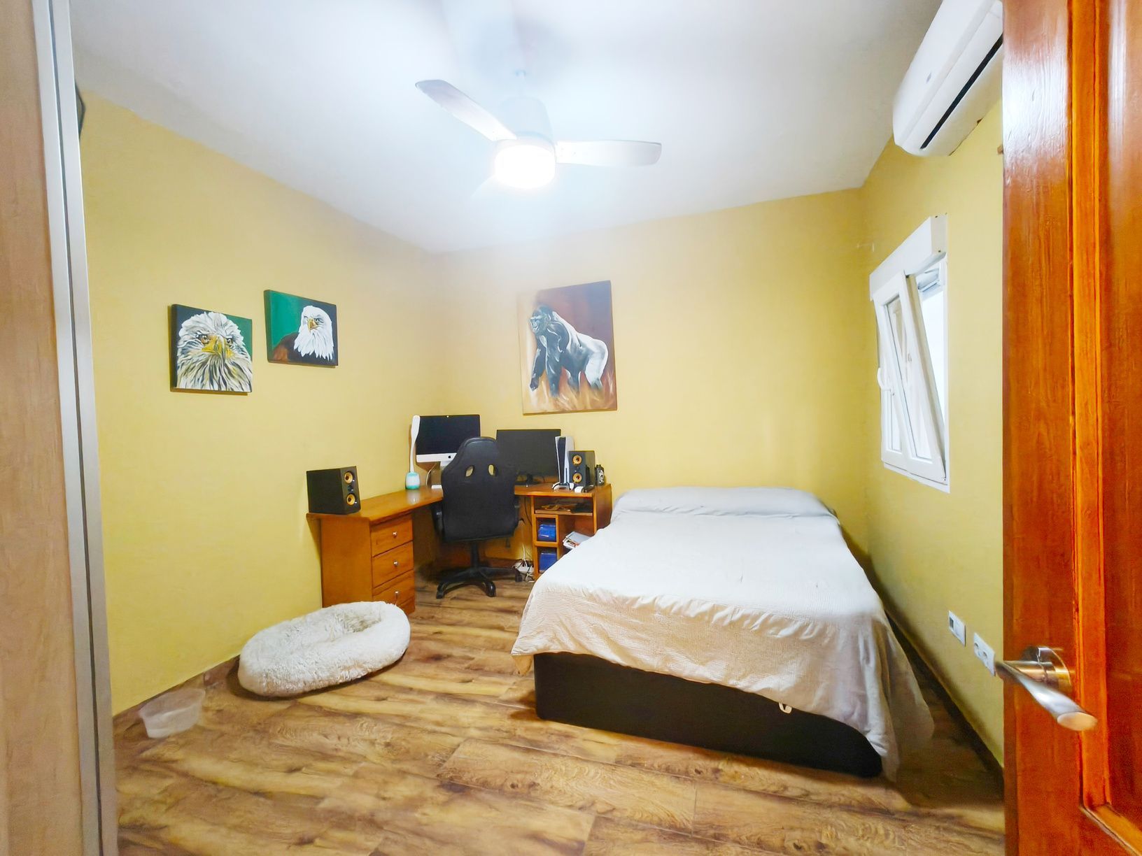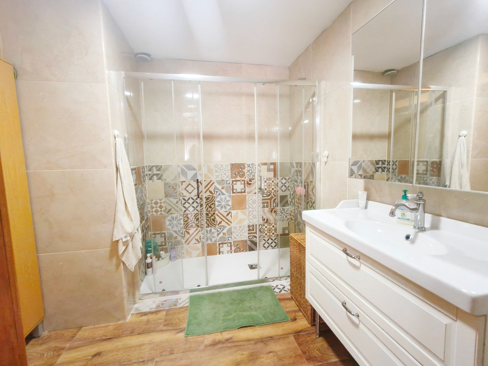 Primera Planta, Compuesta por cuatro dormitorios, uno de ellos con baño en suite, cocina independiente, amplio salón con balcón que ofrece luz natural y vistas y dos baños. Esta planta se puede dividir en dos viviendas de 1 y 2 dormitorios, aumentando su rentabilidad.