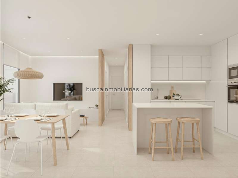 Planta alta: amplio salón con cocina integrada y acceso directo a la gran terraza, ideal para disfrutar del aire libre y reuniones sociales.