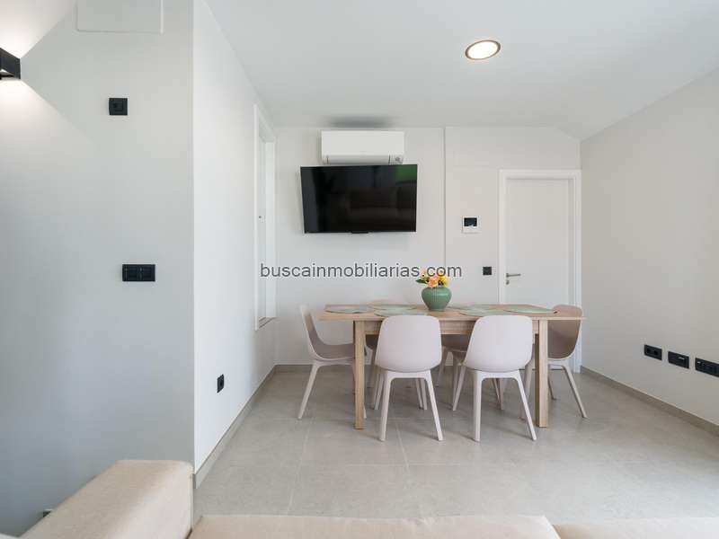 Se entregan tal cual como se aprecia en las fotos, televisión, somier con colchón y cabecero, mesas de noches, mesa de salón y sillón, mobiliario de terraza, cocina totalmente equipada con sus armarios y sus electrodomésticos completos (vitrocerámica, campana extractora, microondas, horno, lavavajillas color inox y aparato lavadora/secadora color blanco), baño completo con plato de ducha, mampara, grifería, accesorios y mueble de lavabo.