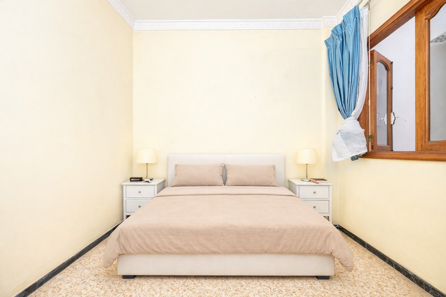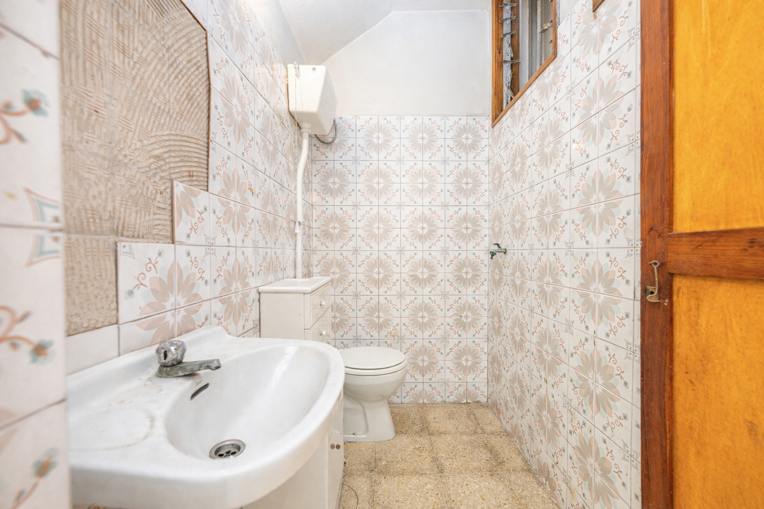 Primera planta: vivienda que requiere actualización, con una superficie de 109 m2. Se distribuye en salón, espacio para cocina, tres dormitorios y un baño.