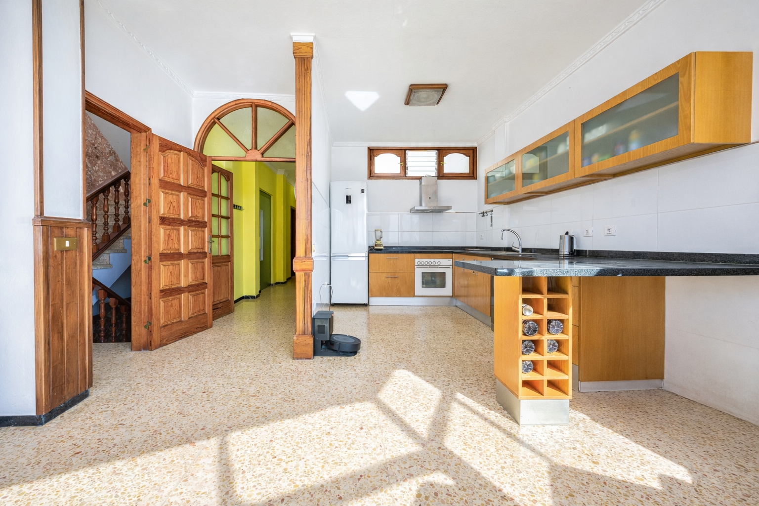 El edificio dispone de hueco de montacargas/ascensor que comunica toda la vivienda, desde el garaje hasta la azotea, si bien actualmente no se encuentra en funcionamiento.