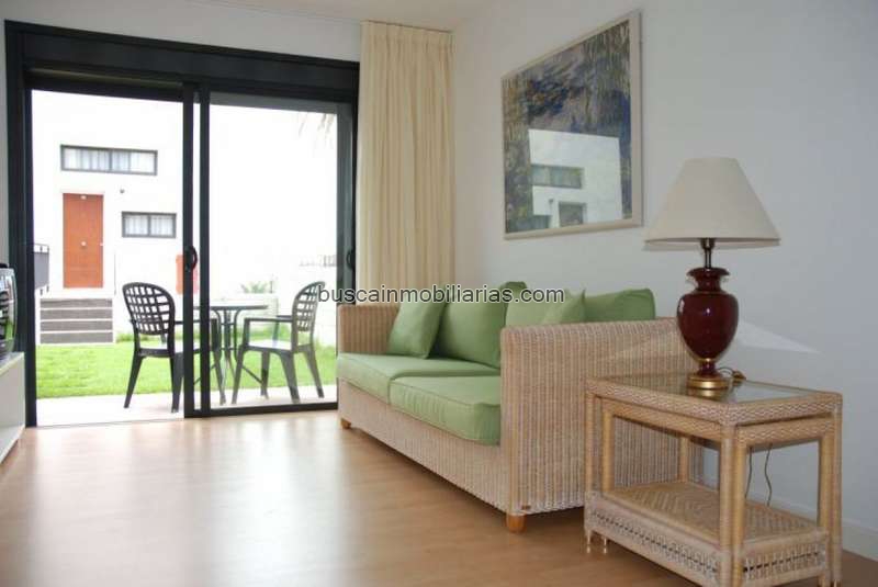 La vivienda dispone de luminoso salón con cocina integrada, baño completo, terraza privada, pequeño jardín y plaza de garaje incluida.