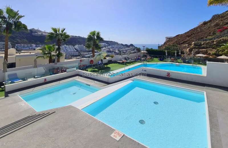 Nuestra agencia ofrece en alquiler un apartamento situado en un complejo moderno en la zona de Puerto Rico. El complejo, dispone de zonas ajardinadas, bar-piscina, solarium y varias piscinas comunitarias con vistas maravillosas al mar.