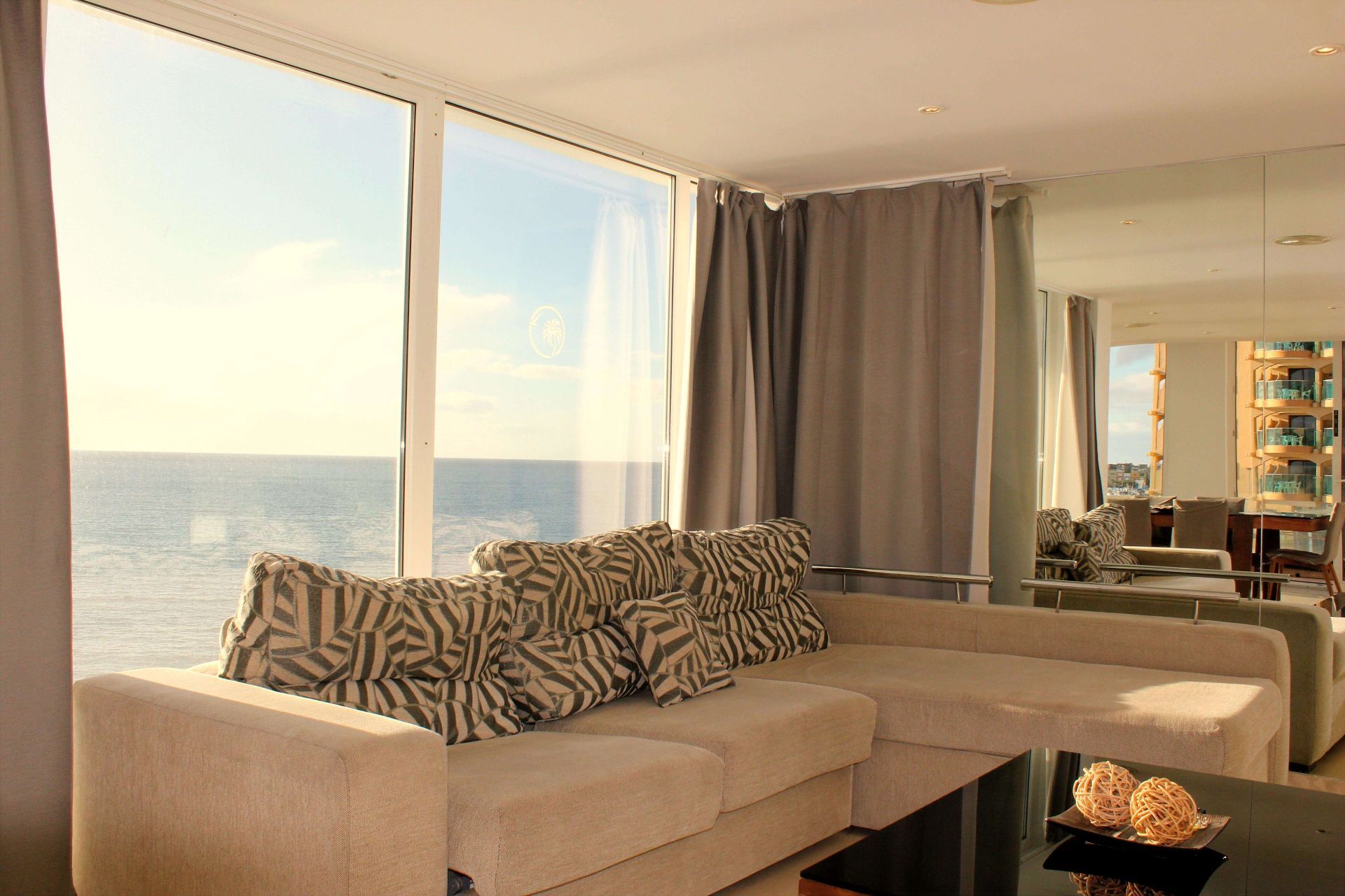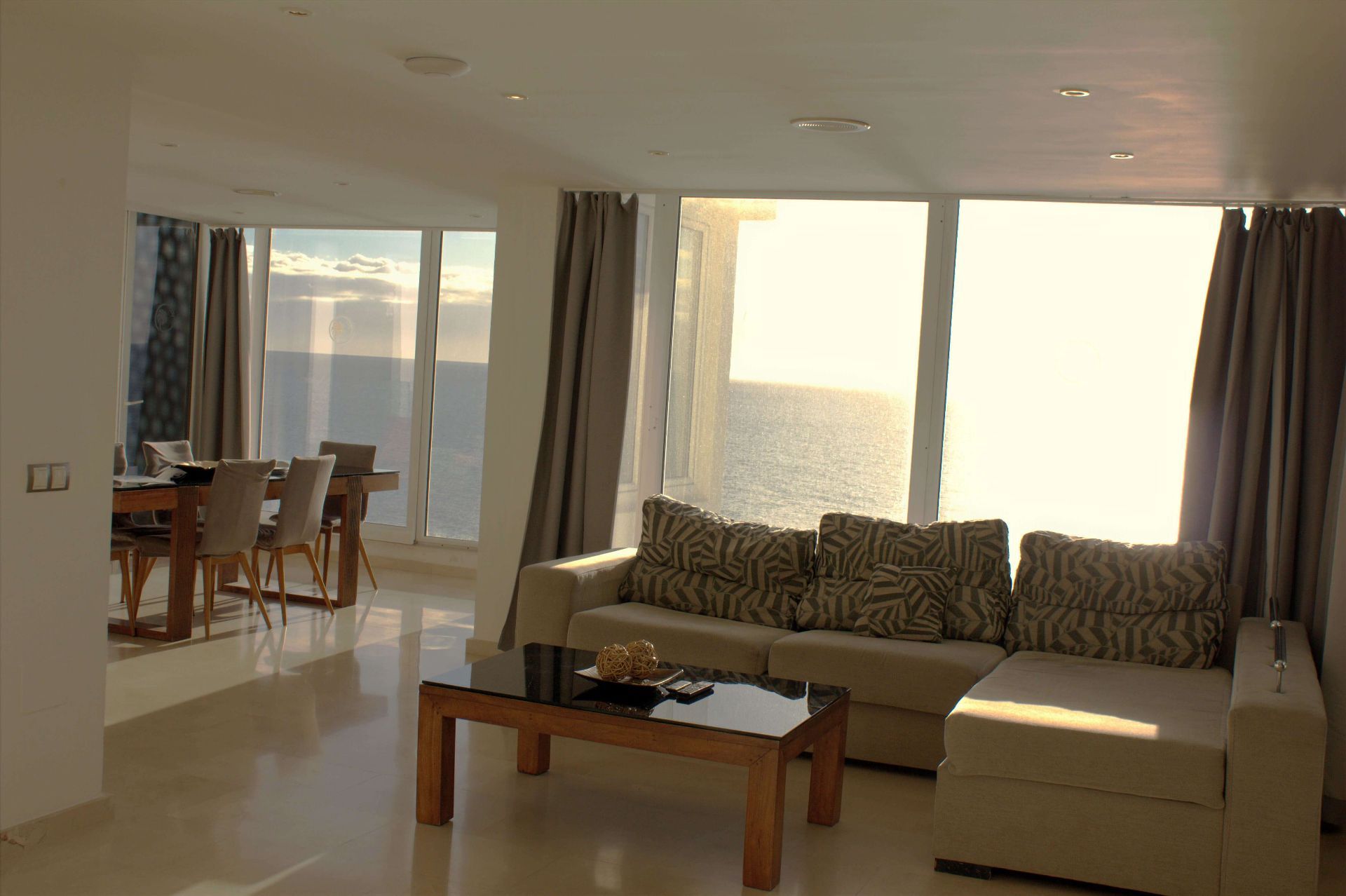 Este elegante apartamento presume de impresionantes vistas al mar desde el salón y el comedor/cocina, donde la abundante luz natural ilumina toda la parte frontal del apartamento. El comedor da a la terraza lateral con tumbonas y zona de comedor al aire libre, y ofrece vistas a la playa de La Lajilla.