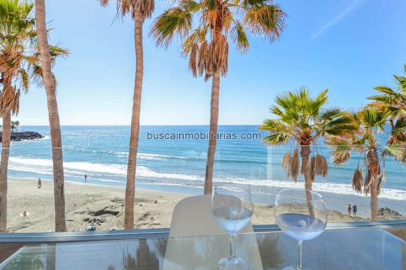 Conexión con el Exterior; El alma del apartamento es su gran ventanal de suelo a techo. Al abrirlo, el sonido de las olas se convierte en la banda sonora del hogar. La terraza, soleada, con barandilla de cristal de seguridad, diseñada para no interrumpir la visión directa de la arena y el mar mientras desayunas.