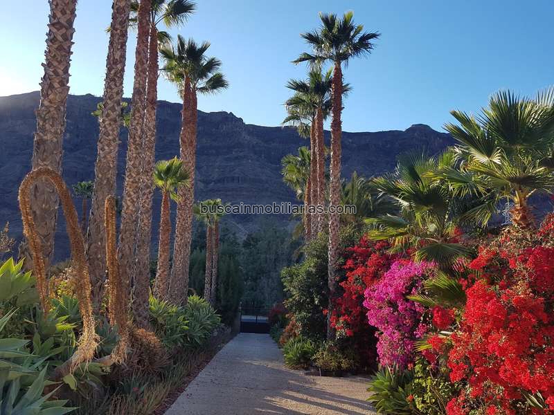El complejo incluye un edificio de garaje, taller, recinto para animales, aviario, terrazas, huertos, jardín de hierbas, plazas de aparcamiento y dos entradas para vehículos. La finca está ubicada a 20 minutos en coche de Maspalomas, en un valle hermoso de Gran Canaria cerca de Fataga, ofreciendo exclusividad y comodidad en un lugar apartado.