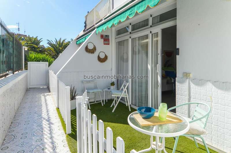 La planta principal consta de una terraza, moderno salón en abierto con un sofá-cama y aire acondicionado, cocina equipada, y un aseo con lavadora. La planta superior dispone de un balcón cerrado con cristaleras donde entra la luz natural, un coqueto dormitorio con aire acondicionado y un espacioso baño completo.