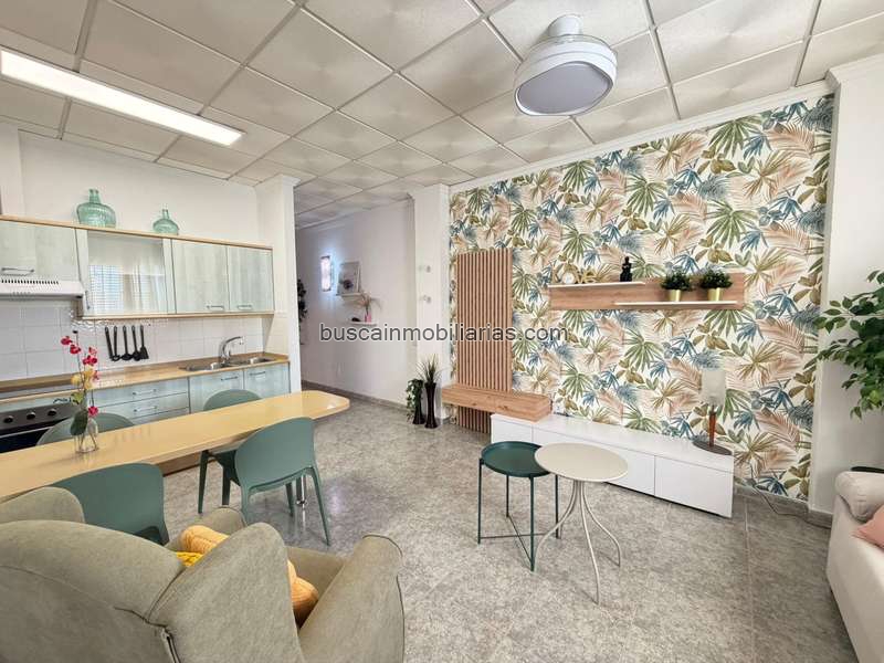 Se trata de una vivienda ubicada en la planta baja de este edificio que hace esquina y está compuesto por 2 dormitorios; uno muy amplio con ventana al exterior y un dormitorio interior; ambos con armarios, salón-cocina bastante luminoso y un cuarto de baño con plato de ducha y lavadora ambos a estrenar.