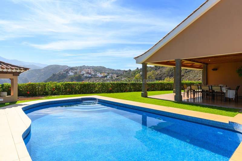 Mintout Inmobiliaria ofrece magnífico chalet en 2 alturas y buhardilla, con piscina climatizada, zona de barbacoa y extensos jardines, dentro de la urbanización exclusiva de Bandama, con una de las mejores vistas a montañas y barrancos del centro de la isla.