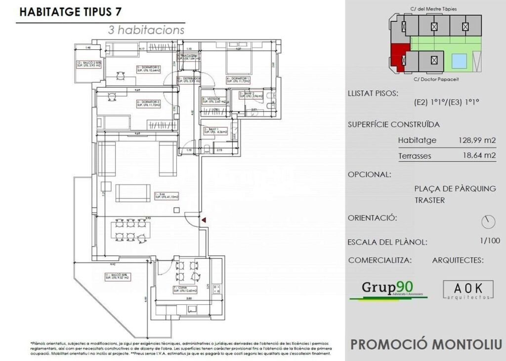 RESIDENCIAL MONTOLIU. ESPLENDIDO PISO DE CASI 130 M2. CON PARKING Y TRASTERO