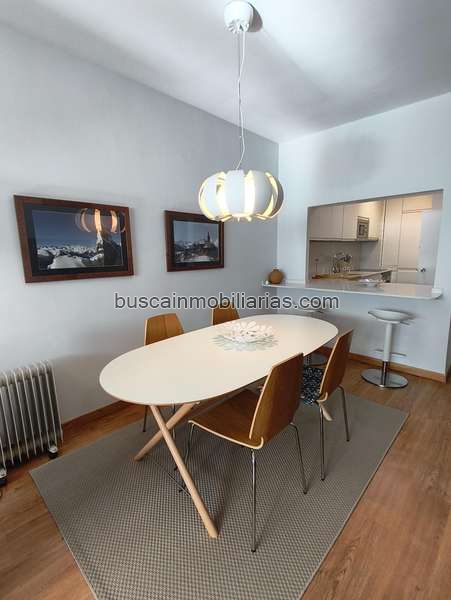 Al acceder a la vivienda, encontramos una cocina independiente totalmente equipada y reformada que da al comedor, cómoda y funcional. Desde el pasillo se llega al comedor, un espacio pensado para compartir comidas y momentos agradables alrededor de una mesa amplia. Frente a este, se abre un luminoso salón, creando un ambiente cálido y acogedor, acompañado de ventanales con vistas hacia el parque y montañas.