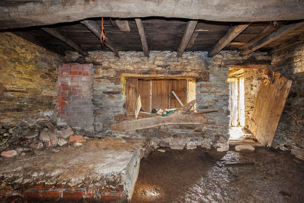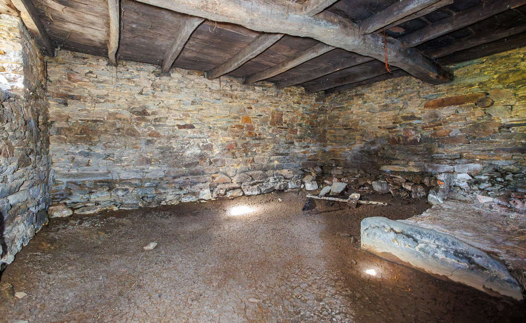 El conjunto incluye una casa principal de piedra distribuida en dos plantas, conectadas por una escalera interior. Su estructura conserva muros de piedra de gran grosor y vigas de madera en techos. La planta superior alberga varias habitaciones con ventanas que proporcionan luz natural y vistas al paisaje.