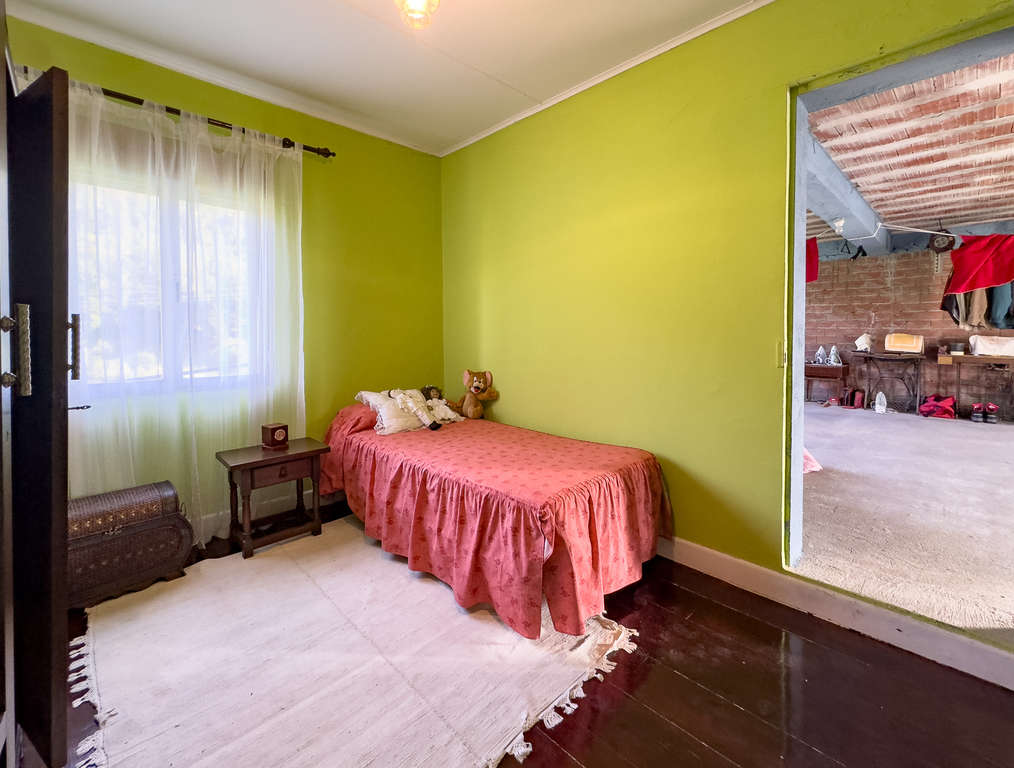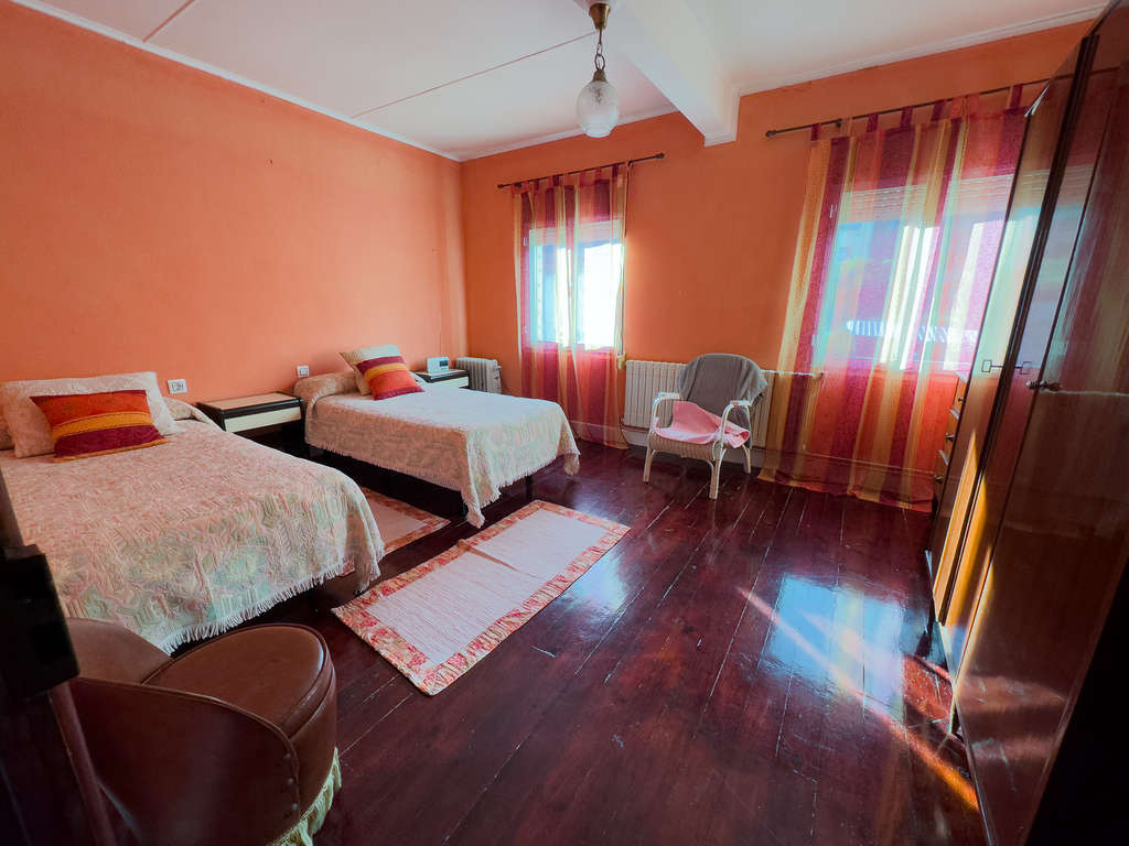 La vivienda cuenta con cuatro habitaciones de diferentes tamaños, dos salones con vigas de madera vista, cocina equipada con cocina de leña tradicional y electrodomésticos modernos, y dos cuartos de baño. Los espacios destacan por sus suelos de tarima de madera, carpintería original y acabados de calidad que han resistido el paso del tiempo.