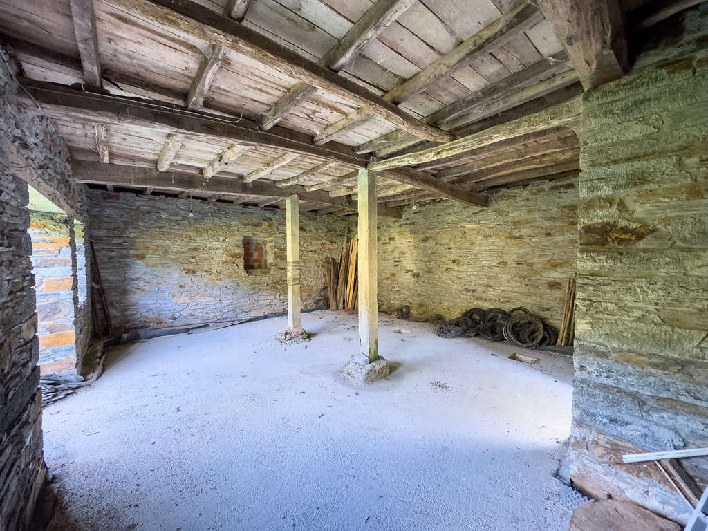 El bloque anexo a la vivienda incluye un garaje en planta baja, un almacén en la planta superior, y un segundo garaje en la parte posterior que aprovecha la pendiente natural del terreno. Además, bajo la vivienda se extiende un amplio sótano abierto con posibilidades.
