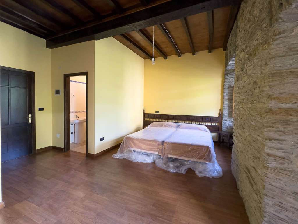 La distribución incluye 8 habitaciones completamente equipadas con baños en suite, 5 salones con mobiliario de época, y espacios de restaurante preparados para uso comercial. Uno de los salones está construido alrededor de una enorme lareira rehabilitada, y otro cuenta con una galería de madera acristalada.