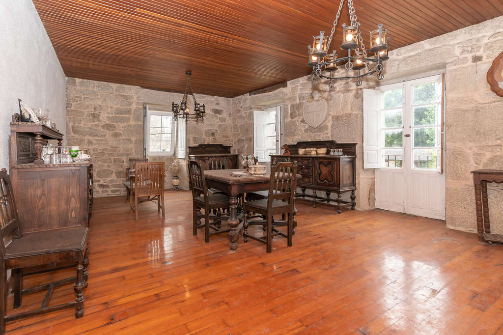 Además, la propiedad incluye múltiples construcciones adicionales en diferentes estados de conservación: la casa de los caseros (a rehabilitar), una capilla, un hórreo de planta cuadrada, cuadras, un gran alpendre, un garaje, un palomar y una amplia zona de granja para ganado, separada del conjunto.