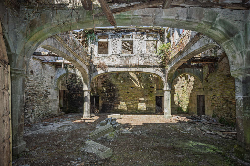 El corazón del pazo es un patio interior de 200 m² que destaca por sus espectaculares arcos de cantería que forman una galería porticada de gran atractivo. En el interior conserva escaleras palacianas, lareiras, grandes salones y una bodega, con elementos originales como vigas de madera y trabajos de cantería.