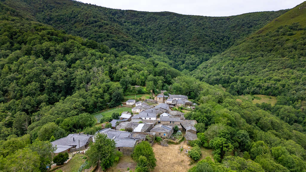 Esta singular propiedad se encuentra en una aldea de la Serra do Courel, a 4 km de Seoane y 20 km de Piedrafita do Cebreiro. El conjunto cuenta con 5471 m² de superficie gráfica total y 1070 m² construidos distribuidos en múltiples construcciones tradicionales de piedra y pizarra.