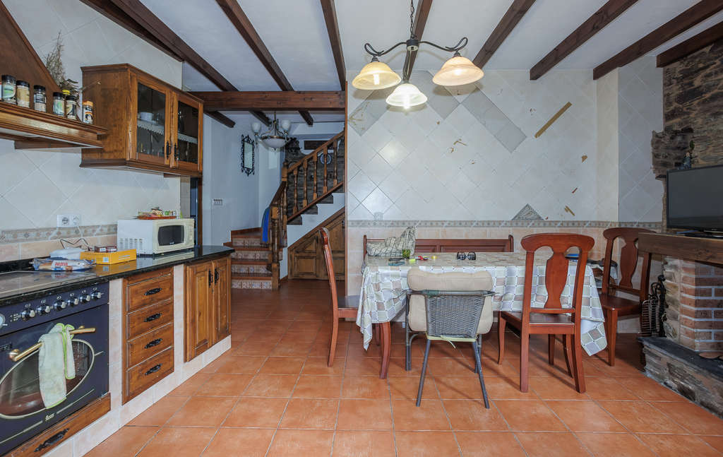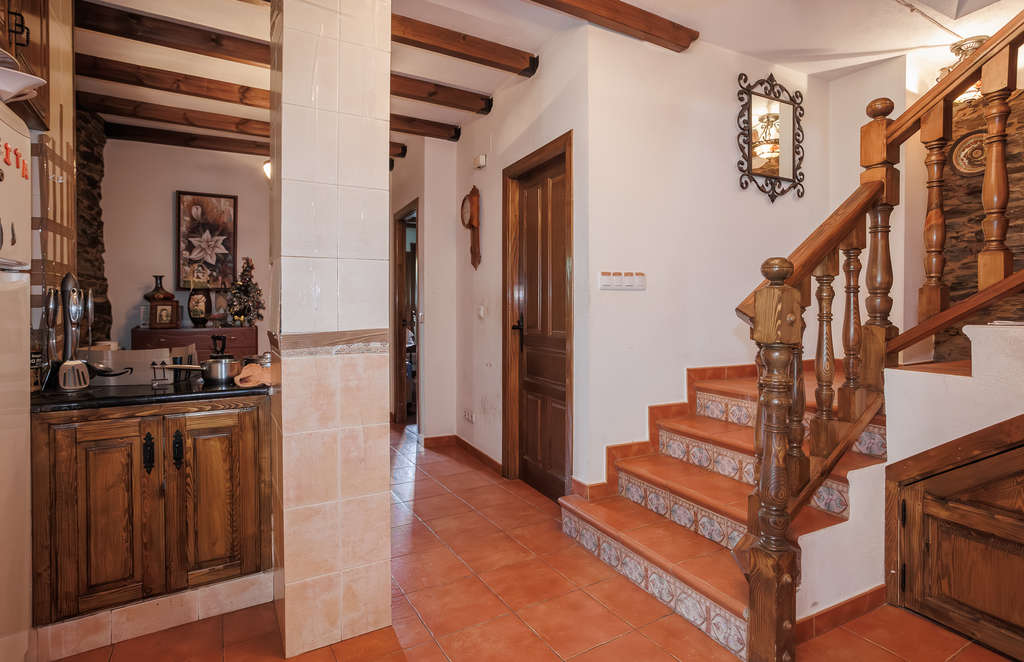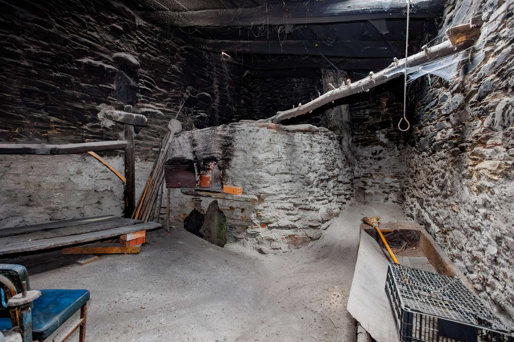 La casa principal está restaurada y lista para habitar, y está distribuida en dos alturas. La planta baja incluye cocina-comedor con chimenea, tres habitaciones y un cuarto de baño completo. La planta superior alberga un gran salón-comedor, otro cuarto de baño y dos habitaciones.