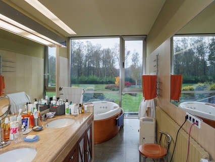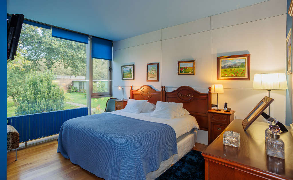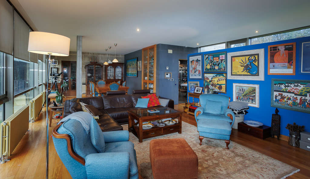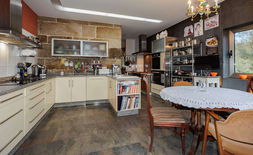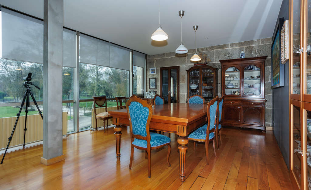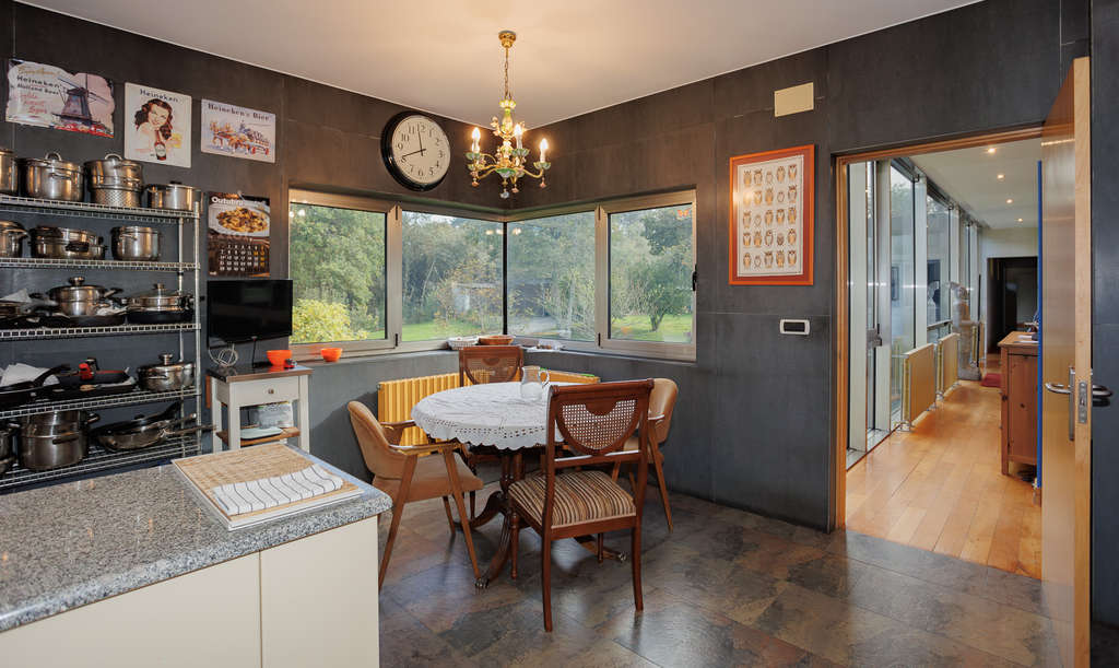 La vivienda dispone de cocina equipada con opciones de gas, vitrocerámica y leña, amplio salón-comedor con zona de escritorio, 4 dormitorios, 4 cuartos de baño y sala de lectura. Toda la casa cuenta con enormes ventanales con vistas al entorno natural.