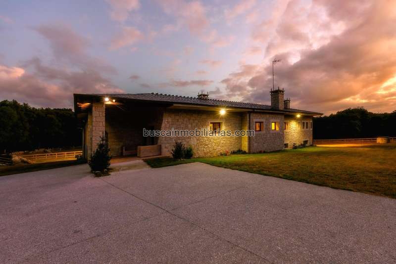 En la provincia de Lugo, en pleno corazón de Friol, nos encontramos con éste precioso Chalet construido en piedra natural de mampostería del país, se encuentra ubicado en el núcleo rural de Camoiras, consta de un semisótano y una planta, todo ello en una superficie de 420 m2 construidos dentro de una parcela de 5000 m2.