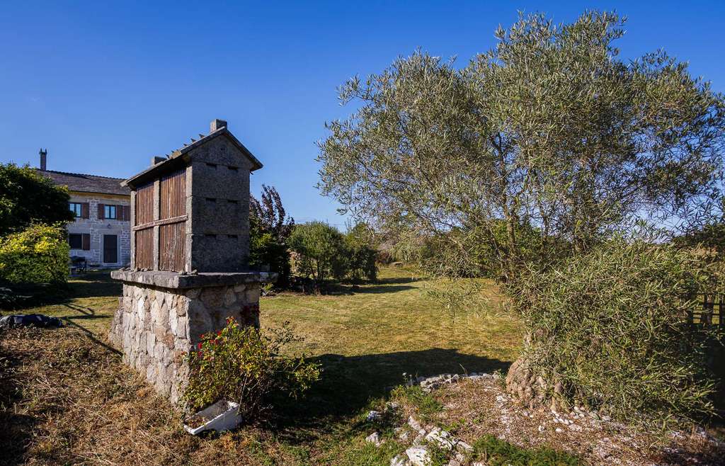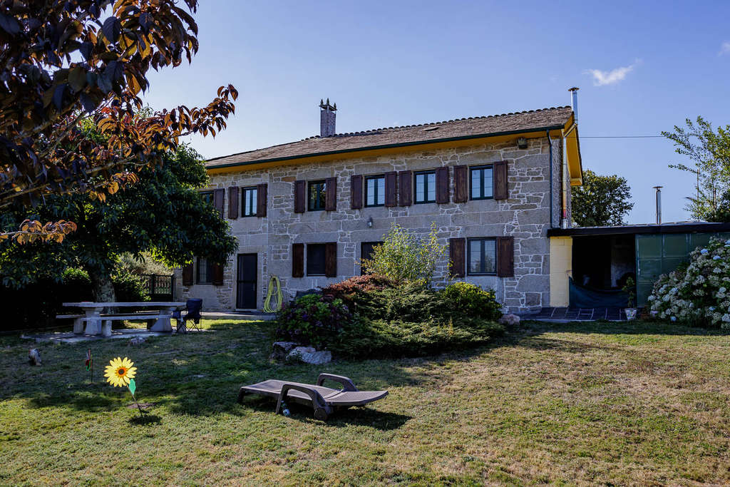 El conjunto se completa con un hórreo tradicional gallego bien conservado, dos pozos, gallinero, mesa de granito tipo merendero y amplias zonas de césped. Toda la casa cuenta con calefacción de gasóleo y paila de leña adicional, además de mosquiteras en puertas y ventanas.