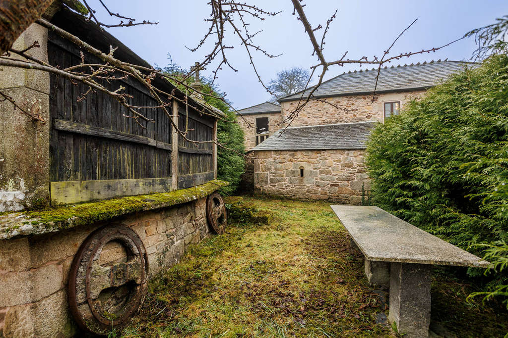La propiedad incluye una segunda casa para restaurar, un gran alpendre adosado a la casa principal y otro alpendre-garaje de doble altura al otro lado del camino, con potencial para construir una vivienda independiente.