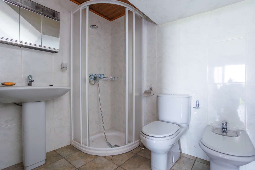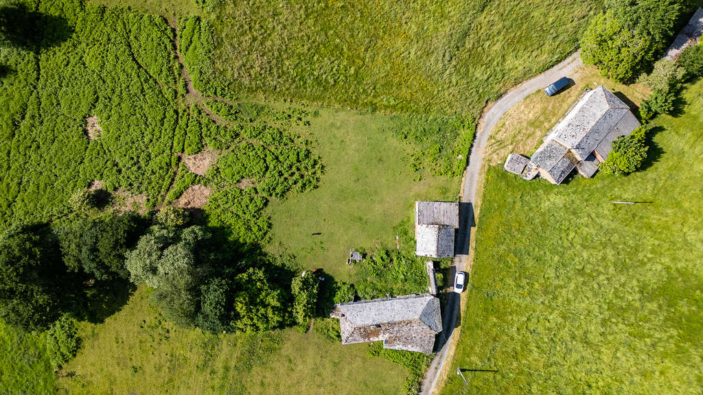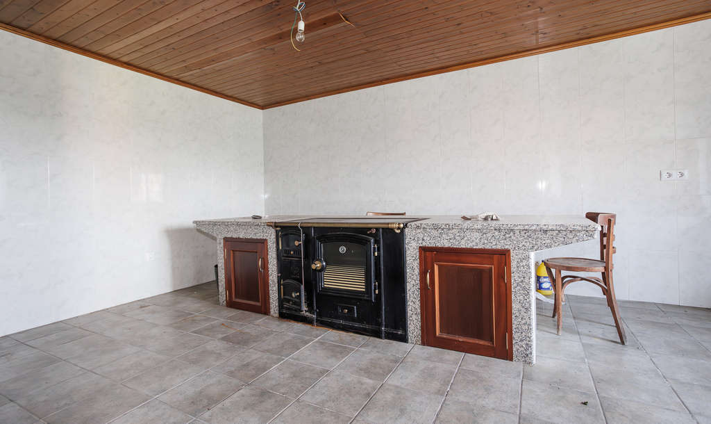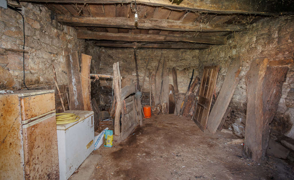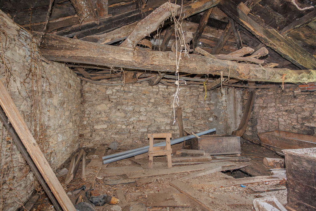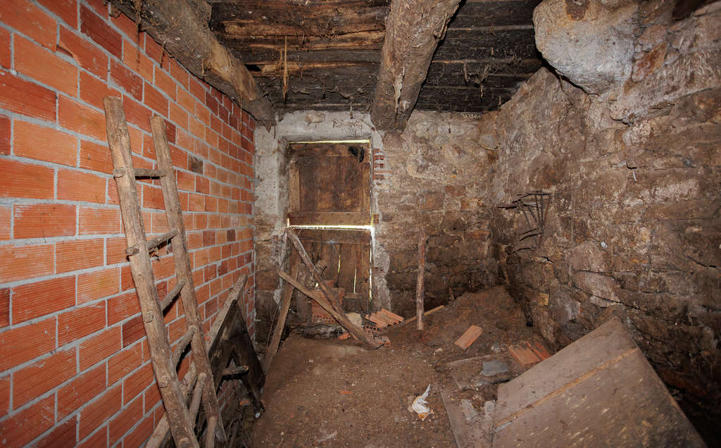 La casa principal conserva todos los elementos constructivos tradicionales: muros de piedra, vigas de madera y tejado de pizarra. La planta baja incluye cocina equipada con cocina de leña tradicional, una habitación, cuarto de baño y dos antiguas cuadras, una de ellas con horno de leña. La planta superior es un amplio espacio que ocupa toda la superficie de la casa y ofrece múltiples posibilidades de reforma y distribución.